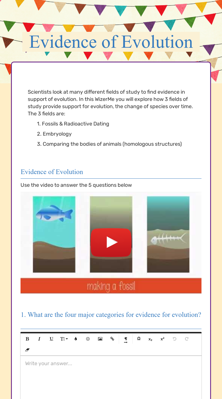 Evidence Of Evolution | Interactive Worksheet By Alyssa Nagel | Wizer.me